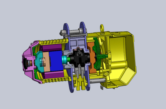 (3)電機裝在卷筒里面的電動葫蘆,其優點為長度尺寸小,結構緊湊。其主要缺點為電機散熱條件差,分組性差,檢查、安裝、維護電機不便,?供電裝置復雜。