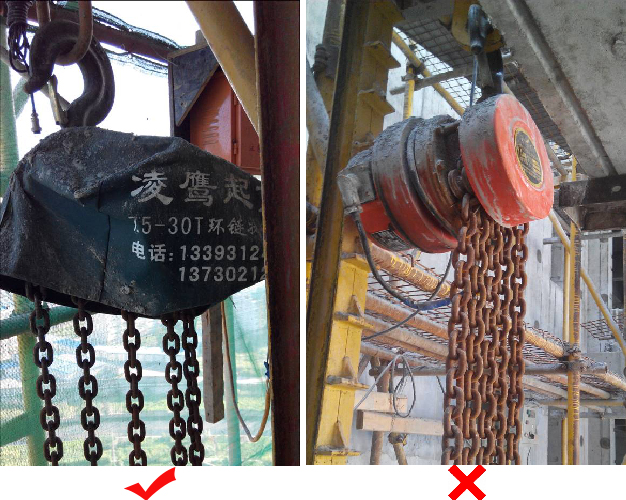 另外如果一個(gè)工程完成,所有的群吊電動葫蘆必須放在一個(gè)通風(fēng)的空間保存(如有淋濕的情況,需要認(rèn)真擦拭干之后進(jìn)行保存)。并且把鏈條都整理整齊,每個(gè)群吊電動葫蘆有秩序的存放,防止以后再用的時(shí)候鏈條生銹并纏繞在一起,導(dǎo)致終無法使用。保存方法如下圖所示: