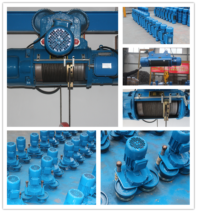 鋼絲繩電動葫蘆組成的部分大致可分為:電機、電器、減速器、控制箱、鋼絲繩、錐形電動機、按鈕開關。