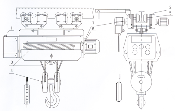 HC方型鋼絲繩電動(dòng)葫蘆結(jié)構(gòu)圖: