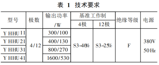 該產品在電動環鏈葫蘆中為裝入式封閉結構,共有四個規格組成的一個系列,根據電動環鏈葫蘆工作特性,用戶提供技術要求,如表1所示: