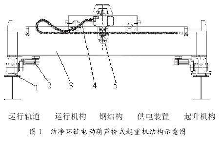 潔凈環(huán)鏈電動(dòng)葫蘆橋式起重機(jī)主要由起升機(jī)構(gòu)、運(yùn)行機(jī)構(gòu)、受力結(jié)構(gòu)件、供電裝置等部分組成。