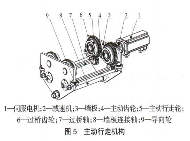 電動(dòng)葫蘆主動(dòng)行走機(jī)構(gòu)的作用是帶動(dòng)電動(dòng)葫蘆行走,與起重機(jī)大車行走機(jī)構(gòu)配合,就可以把載荷運(yùn)送到起重機(jī)覆蓋的任何區(qū)域,具體組成如圖5。