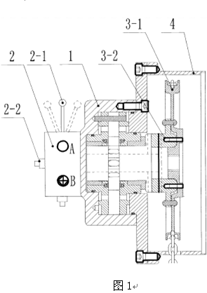 (3) 如圖1所示,集成閥塊2主要由三位四通換向閥2-1、平衡閥2-2組成,其中2-1的功能是控制非圓輪系液壓馬達(dá)1的旋轉(zhuǎn)方向,平衡閥2-2的功能是保持1-1運(yùn)行平穩(wěn),并通過(guò)限制其供液系統(tǒng)的高工作壓力來(lái)實(shí)現(xiàn)對(duì)本裝置的大輸出力進(jìn)行限定。
