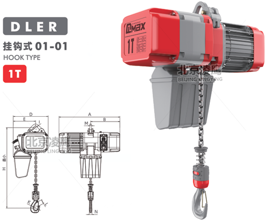 產品名稱:1噸DLER環鏈電動葫蘆掛鉤式