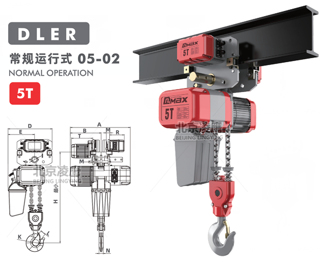 5噸DLEK環鏈電動葫蘆運行式限位開關:重物吊上吊下都有極限開關裝置,使電機自動停止,以防止鏈條超出,確保安全。