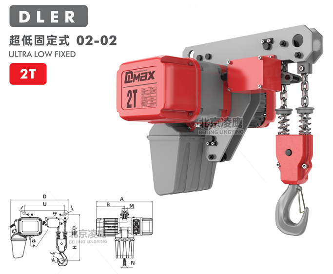 產品名稱:2噸雙鏈超低固定式DLEK環鏈電動葫蘆